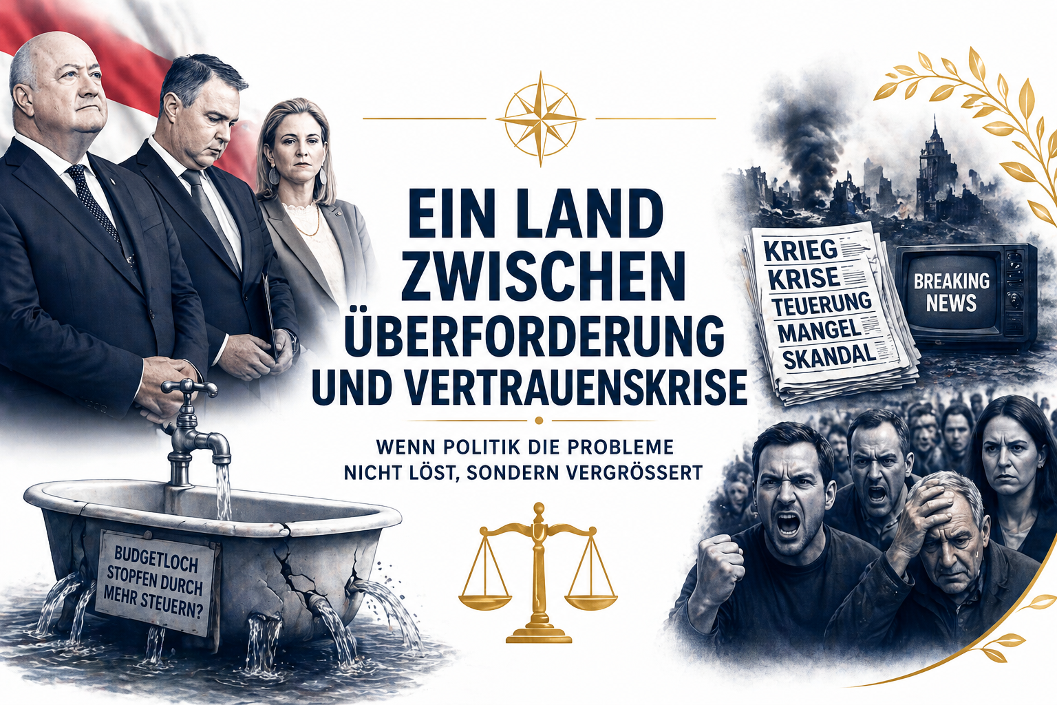 Letztendlich erkennt der Österreicher, spät, aber doch, dass das von ihm gewählte Parlament eine Regierung bestellt hat, deren Spitzen den geschilderten Ereignissen nicht gewachsen sind. Man versucht durch immer neue Steuern die riesigen Budgetlöcher zu stopfen- wie ein Installateur, der durch Aufdrehen des Wasserhahns das Ausrinnen einer löchrigen Badewanne verhindern will. Due tieferen Ursachen des Übels werden nicht angegangen. (Dazu in nächster zeit mehr).