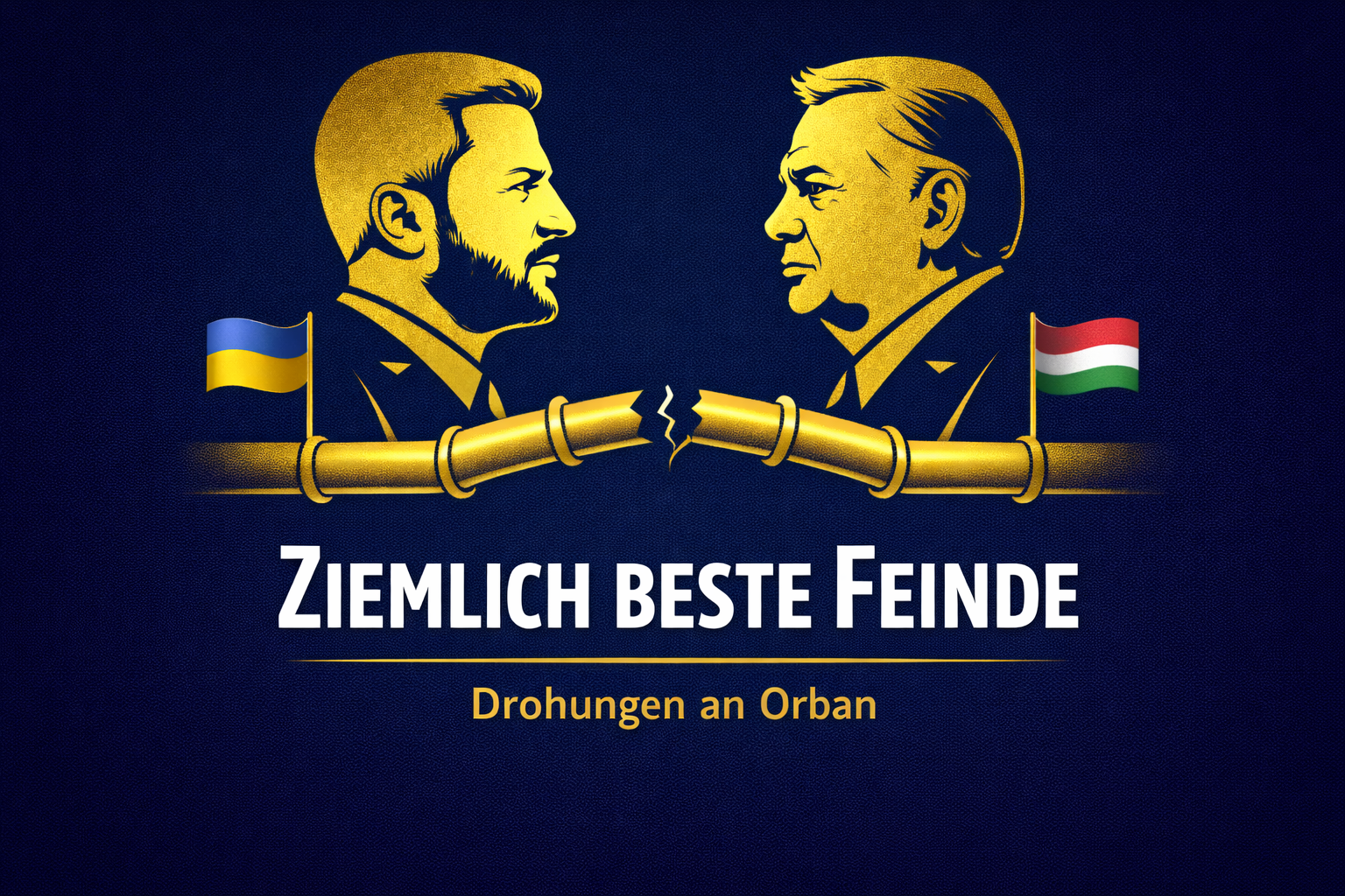 Wolodymyr Selenskyj und der ungarische Premier, Viktor Orban, sind ziemlich beste Feinde. Die Ukrainer sperrten die „Freundschafts-Pipeline Druschba“ von Samara in Russland bis Százhalombatta in Ungarn, eine der längsten Pipelines der Welt. Der erzürnte Banus in Budapest blockierte als Antwort den von der EU geplanten 60-Milliarden-Kredit an die Ukraine. Darauf wütete Selenskyj und drohte unverhohlen mit Gewalt an seinem Budapester Widerpart:
