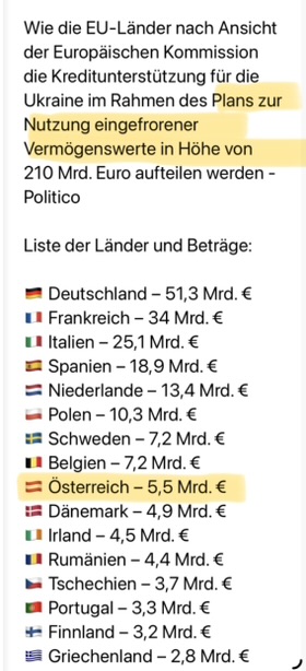 Die EU nimmt Kredite auf, die durch die eingefrorenen russischen Staatsvermögen abgesichert sein sollen. Deren spätere Rückzahlung wäre mit Reparationsleistungen Russlands verknüpft. Mit diesem leicht durchschaubaren Trick wird die Enteignung lediglich auf einen späteren Zeitpunkt verschoben- samt den unvermeidlichen juristischen und politischen Folgen- s. Abb.
