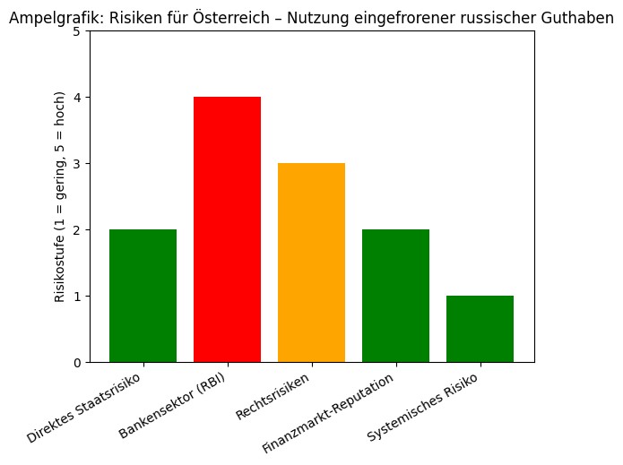 Russland wird spiegelbildliche Maßnahmen ergreifen und besitzt dazu lange Hebel. Der Wert ausländischen Vermögens in der russischen Föderation beträgt je nach Schätzung 280–380 Mrd US-Dollar. Allein eine Beschlagnahme oder Enteignung der Filiale der Raiffeisen Bank international (RBI) würde dieser einen Verlust von 5,3 Milliarden Euro bescheren. Das entspricht etwa dem Schaden, der entstünde, wenn die von Minister Marterbauer als „fast risikolos“ bezeichneten solidarische Haftungssumme von 5,5 Mrd. Euro fällig würde.