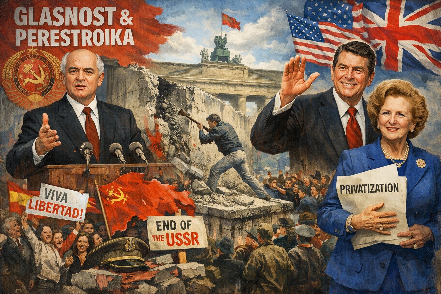 Mit dem Einmarsch der UdSSR in Afghanistan begann eine neue Phase der Konfrontation zwischen den Weltmächten. In den Jahren von 1980 bis 1995 Im Iran stürzte der Schah und ging in die Emigration. Ajatollah Ruhollah Chomeini begründete die Islamischen Republik und wandte sich vom Westen ab. In der UdSSR brodelte es, Gorbatschow verkündete Glasnost und Perestroika. Die Berliner Mauer fiel, viele Militärdiktaturen, wie z.B. Spanien, brachen zusammen, die UdSSR löste sich auf. Reagan und Thatcher privatisierten und deregulierten die Wirtschaft. Kein Stein blieb auf dem anderen. Das war die von den USA dominierte Welt, in der Deng den Trümmerhaufen aufräumte, den Mao hinterlassen hatte.